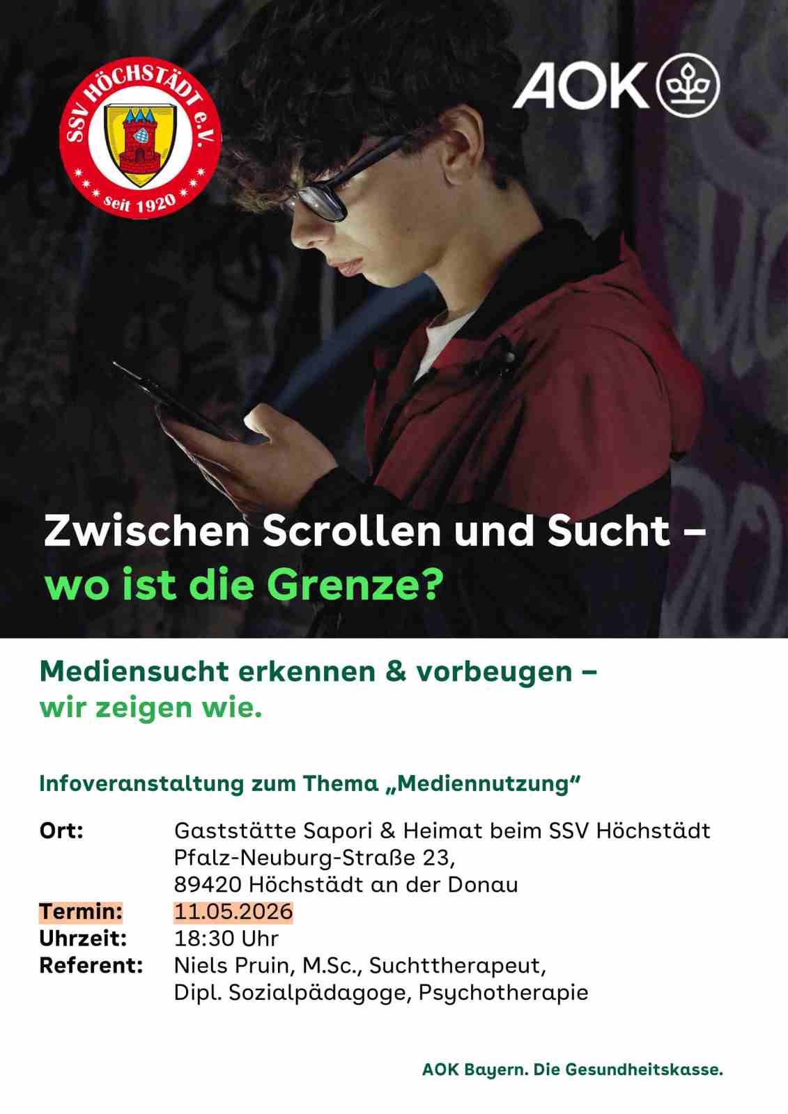 Mediensucht erkennen & vorbeugen –wir zeigen wie. Infoveranstaltung zum Thema „Mediennutzung“ Wo: ... (weiterlesen)